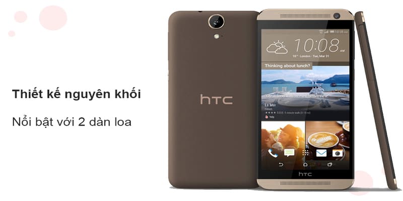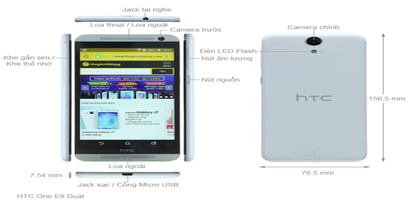 HTC One E9 Dualthực sự là một trong những tuyệt tác kiến thiết khi nó là việc kết hợp tuyệt vời và hoàn hảo nhất giữa thiết kế đẳng cấp của mẫu HTC One nổi tiếng và vẻ rất đẹp thời trang của chiếc HTC Desire. Mặt sống lưng làm bằng chất liệu nhựa được mài sáng bóng loáng sánh đôi cùng phần hông màu quà ánh kim đã khiến choOne E9 Dualnổi bật hơn nhiều các địch thủ cùng phân khúc. Thiết kế gọn gàng với độ mỏng dính chỉ 7.49 mm, mặt cuối cùng các cạnh phần đông được vạt cong giúp đồ vật ôm trộm vào lòng bàn tay bạn cho cảm hứng cầm dễ chịu và tự nhiên và thoải mái nhất. Trong khi là nhị dải loa Boomsound đối xứng xấp xỉ trong kiến tạo đặc trưng của điện thoại htc vừa giúp tạo điểm nổi bật cho vật dụng vừa đem về trải nghiệm music khác biệt.